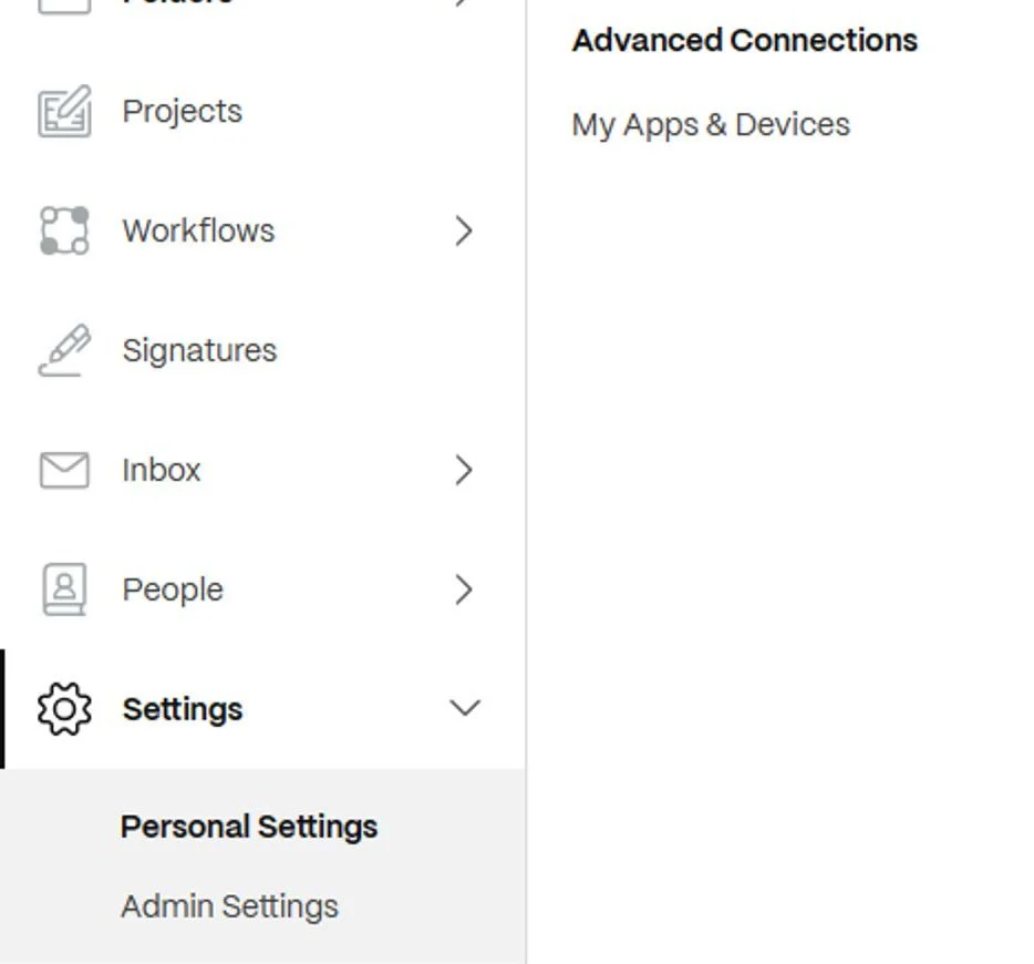 2. In the left hand navigation menu click the settings cog followed by Personal Settings and lastly Advanced Connections.